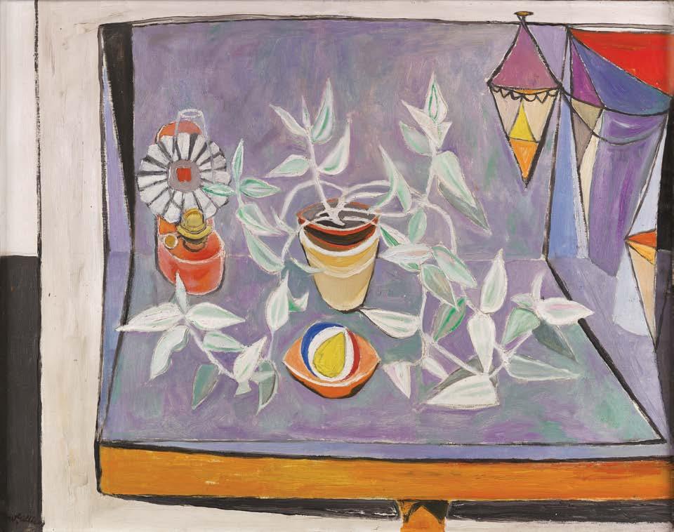 Alberto Morrocco OBE, FRSA, FRSE, RSW, RP, RGI, LLD (1917–1998) Still Life with Bluebird – Night, 1981 oil on canvas, 71 x 76 cm signed and dated upper left; signed and title inscribed on artist’s label versoAnne Redpath was the pivotal figure in the group of painters now referred to as The Edinburgh School. Born in Galashiels in 1895 and brought up in Hawick, she attended Edinburgh College of Art, receiving her diploma in 1917. Travel was a source of inspiration for Anne Redpath throughout her life. In 1947, she visited Menton in the south of France, where she painted and sketched extensively. Menton is 20 miles north east of Saint-Jean-Cap-Ferrat, where Redpath had lived with her architect husband James Michie and young family during the 1920s, before returning to her native Scottish Borders in 1934. She had considerable commercial success in her lifetime, enjoying a fruitful, consistent relationship with The Scottish Gallery and latterly with Reid & Lefevre in London. Since her passing, her reputation has been further enhanced with retrospective and centenary exhibitions, so that now she is established as one of the great figures in 20th century Scottish painting.