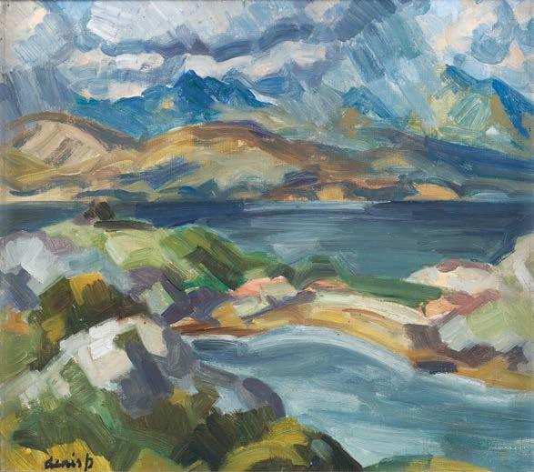 an overdue reappraisal. The art collection of David Lockhart also reflects a life-long love of Scotland and its artists, some introduced to him through his association with The Scottish Gallery with many paintings acquired from our Festival exhibitions. He appeared in the 1985 BBC programme Morrison at Work alongside the landscape painter James Morrison (1932–2020) in front of View from Morar (cat. 47), explaining his familiarity and connection with the west coast of Scotland. Both collections are a celebration of lives well lived, surrounded by art which gave so much pleasure, each a way-marker in life, of time, place, and people. For The Gallery these returning works remind us how a collector is the benign, temporary custodian, providing another layer of provenance in the journey of a work of art which will be there long into the future.