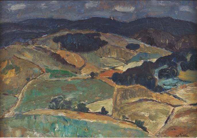 Sir William Gillies is widely regarded as one of Scotland’s greatest landscape and still life painters and has been one of the most important artists to The Scottish Gallery, holding seven solo exhibitions during his lifetime. Gillies was the dominant figure of the Edinburgh School over which both his personality and his work had a quiet authority. He led by example at the College of Art, encouraging his students to experiment but from a firm grounding in looking, and of course practice, drawing in particular. He also selected his staff to reflect this ethos: men and women who had a similar independence but respected hard work, what William MacTaggart called ‘the good habit.’ The duties of teaching for Gillies and many of his colleagues in the School of Drawing and Painting were combined with their own practice without conflict; being a professional painter: working and exhibiting, was understood as integral to the reputation and health of the