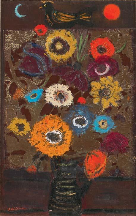 26. Birds and Flowers, 1964 oil on canvas, 63 x 76 cm signed lower left; title inscribed on labels verso
