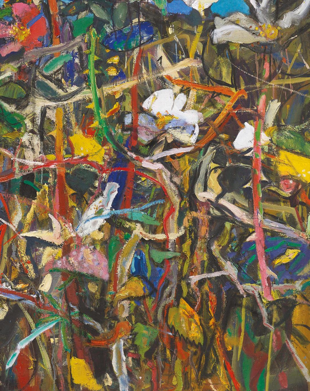 My painting is a journey through a landscape of self – which starts in the real world of my garden. Here, I am the centre of it, observing and recording seasonal change but searching also for the moment when thought stops and the paint itself opens up the mind’s eye to another hidden world.
