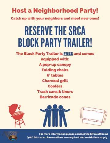 SRCA highly recommends our SR residents take advantage of this FREE opportunity, by reserving the block party trailer to host a party for you and your neighbors. The Block Party trailer comes equipped with all your block party essentials. Please visit the SRCA website or call the SRCA office for details.