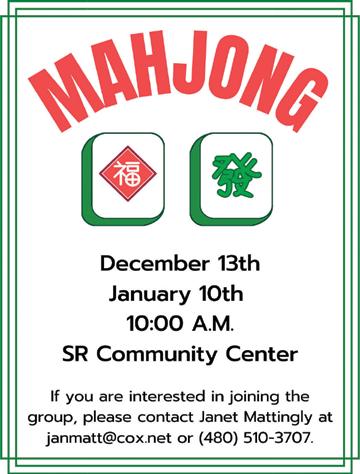 9 10 Holiday Party & Boat Parade 6:00 pm - 8:00 pm 11 12 13 Mahjong 10:00 am SRCA Board of Directors Meeting 4:30 pm