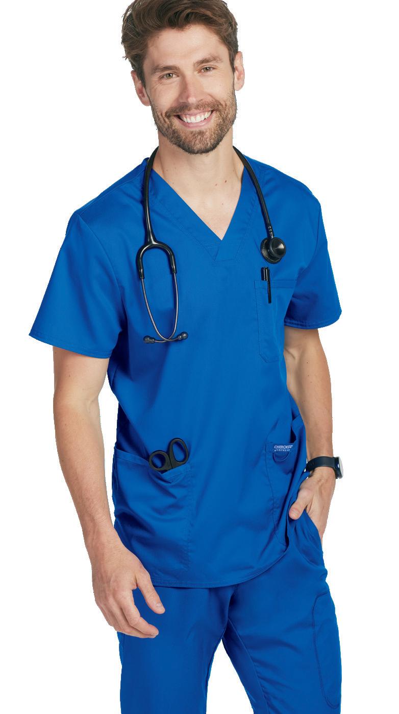 M. 4777 Unisex V-neck Top Chest pocket. Starting @ $13.99