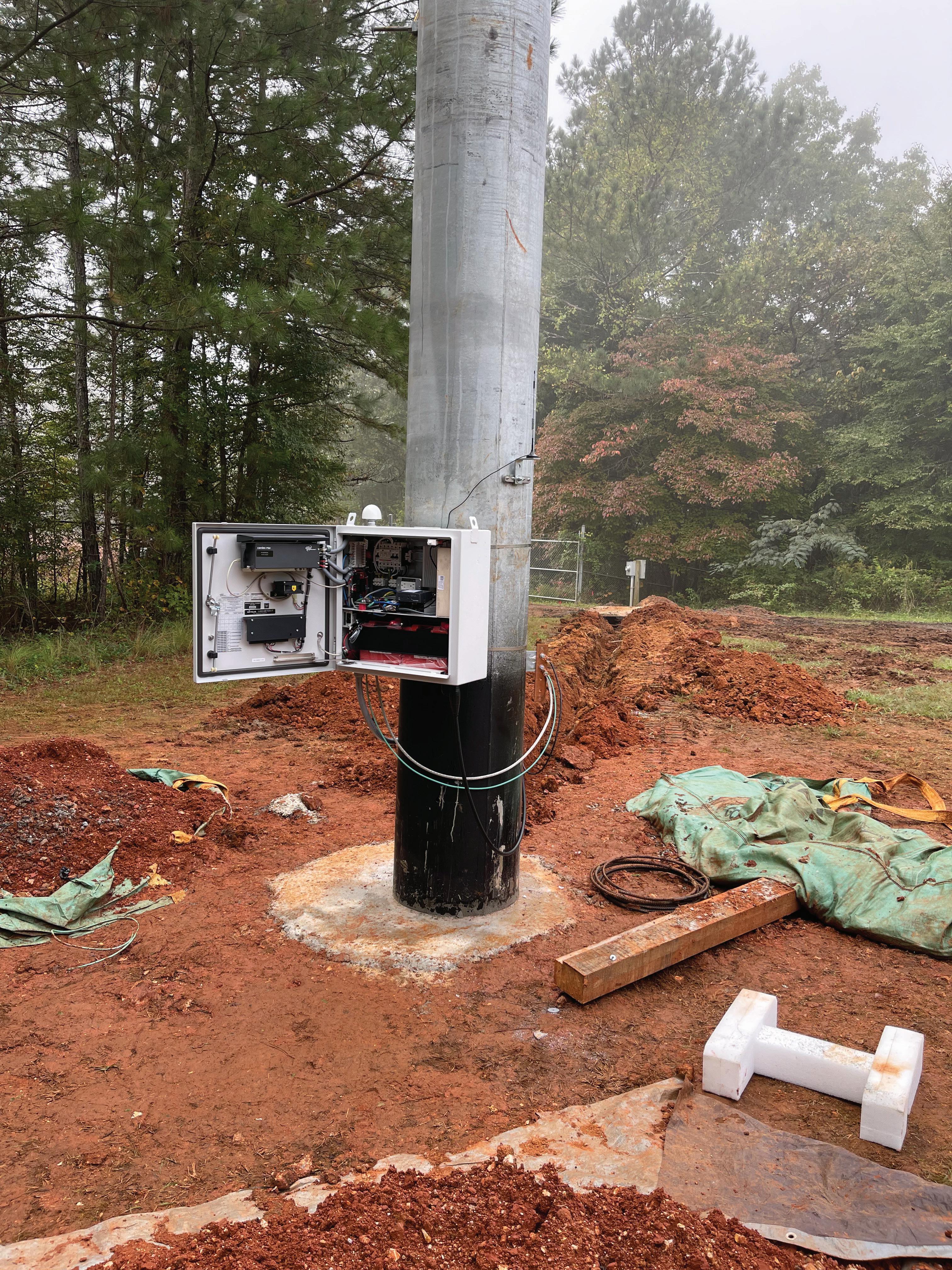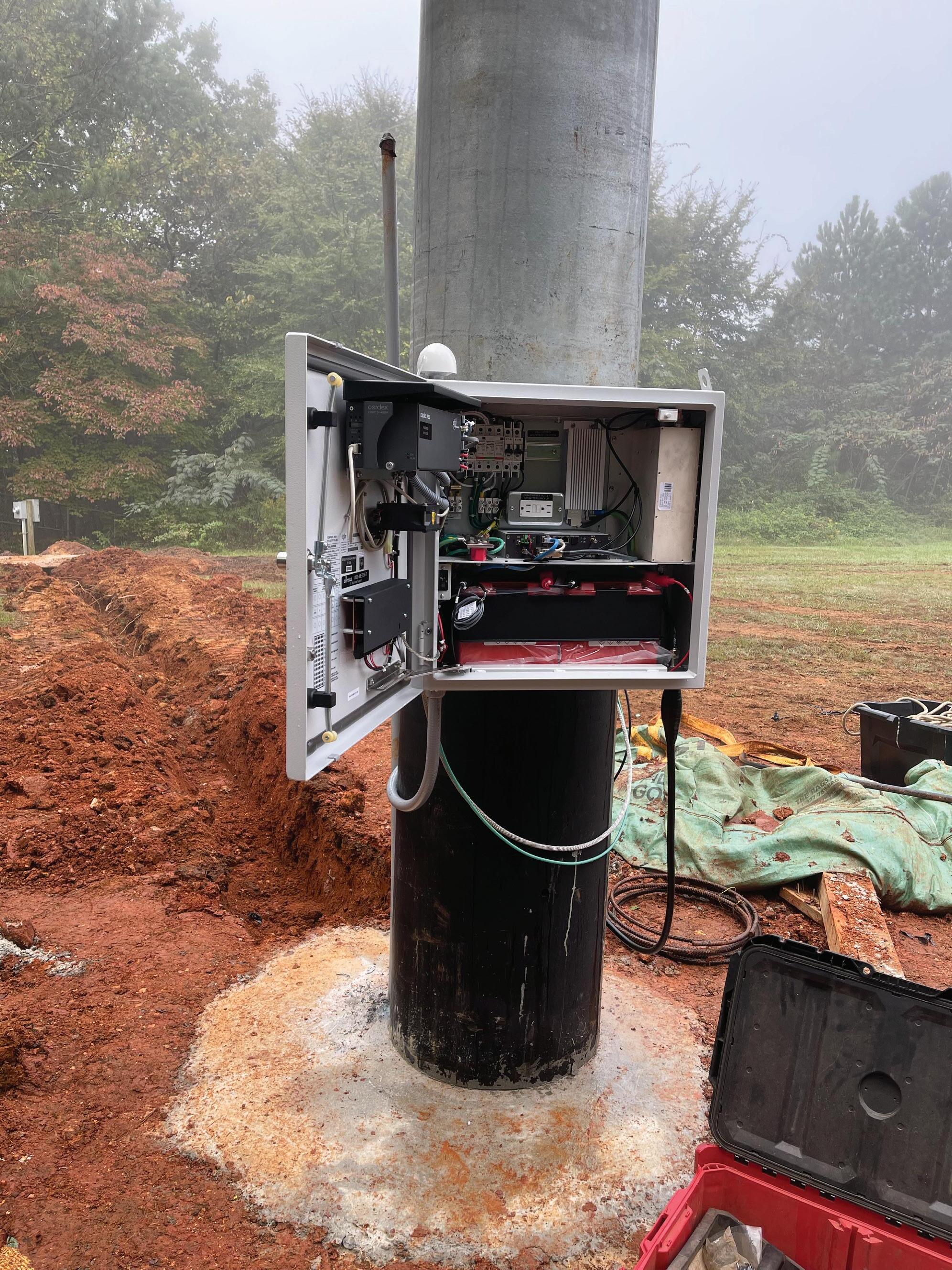 We're nearing completion. Inside, all the equipment is in place to listen to the meters, gather readings, and send the data to the cloud. All of our base stations are grounded to a cell tower grounding bed. We have gone over and above to ensure safety to the cell tower.