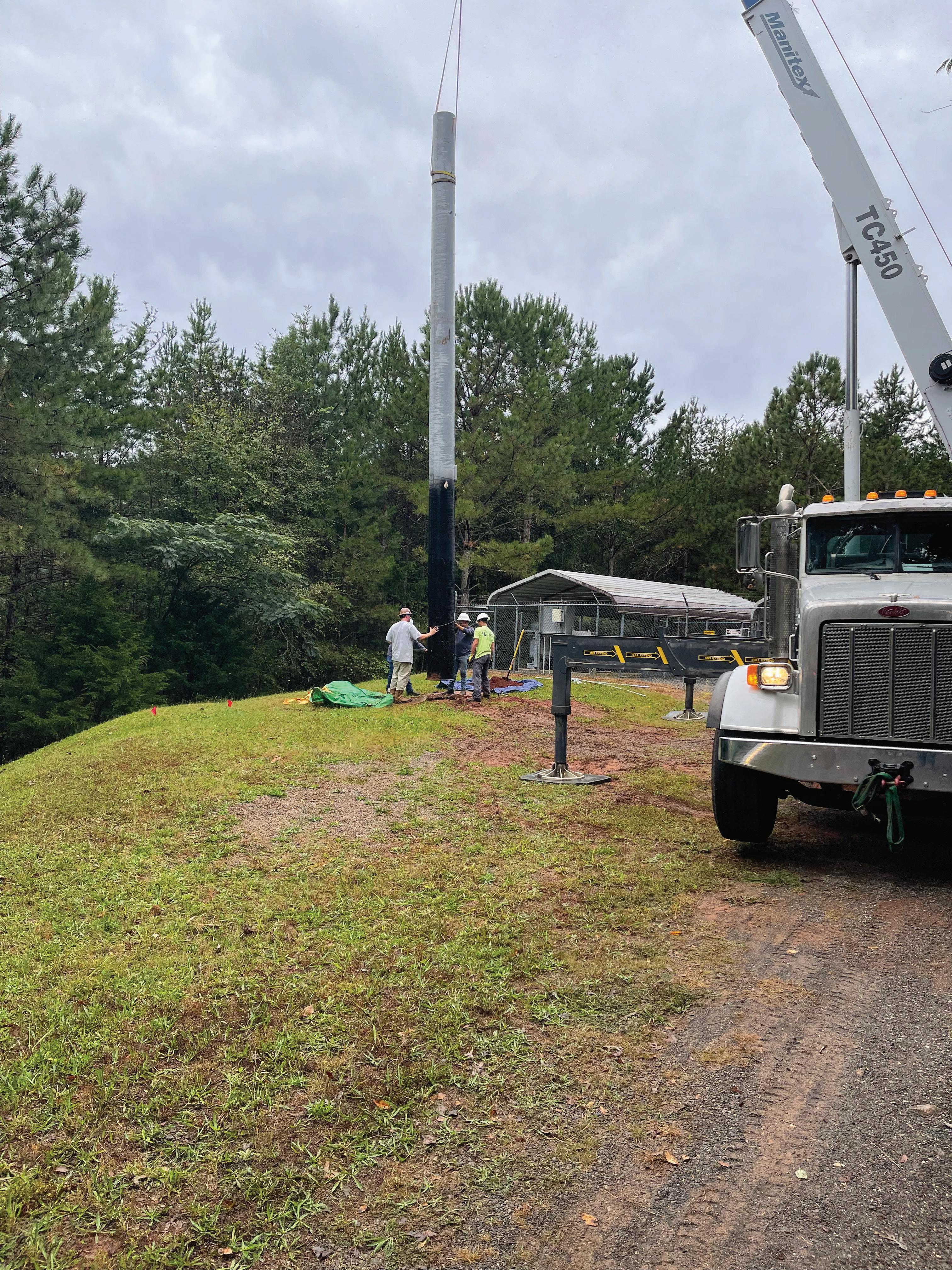 ECCO and the contractor pre-assembling the antenna on the pole before installation.