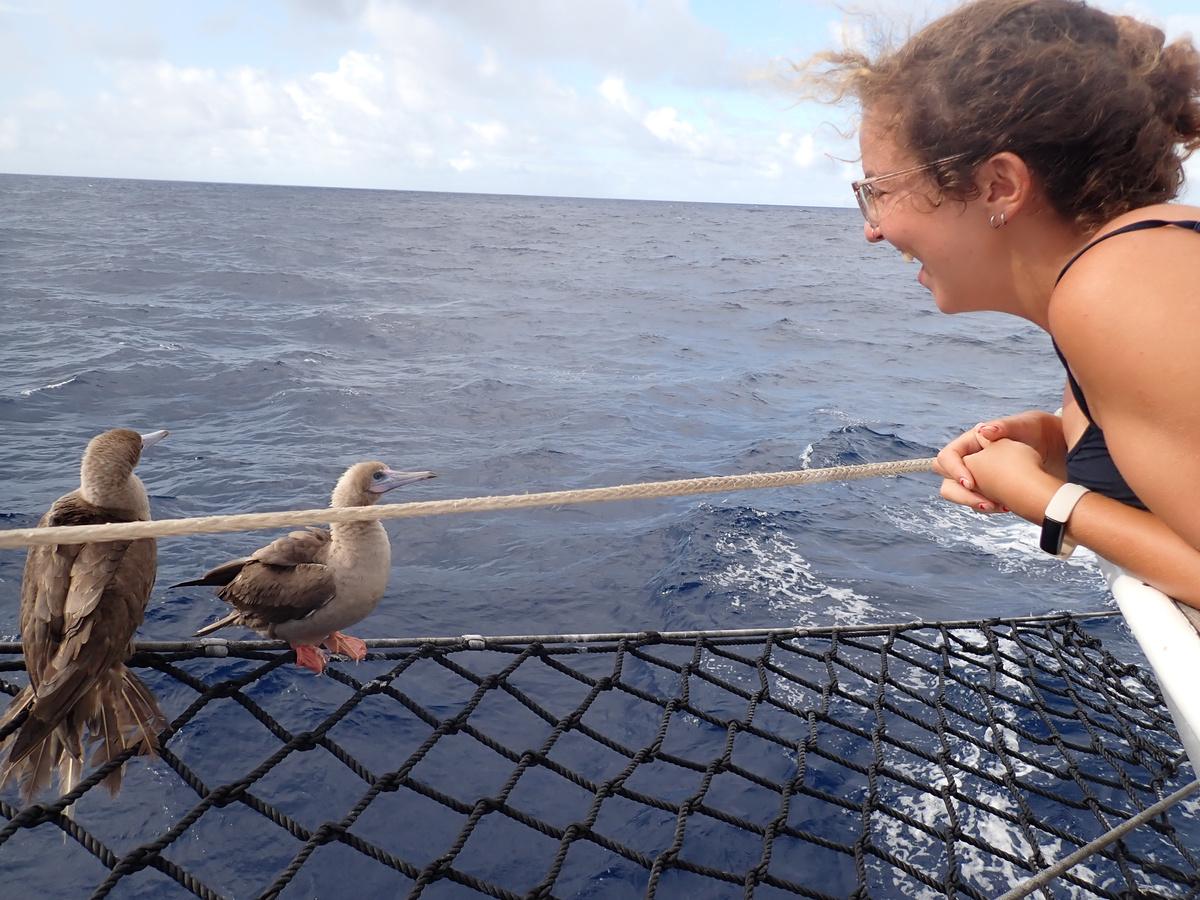 Noah van Aardenne is a student of aquaculture at the University of Hawai’i at Hilo While in college he has worked in aquaculture and conservation in the Pacific, including a restoration project on Palmyra Island Becca Cox is a deckhand and SEA alum (S299) from Falmouth, MA Her interests include the connection of art and culture to the changing environment, seabird biology and ecology, and artmaking with any materials she can get her hands on
