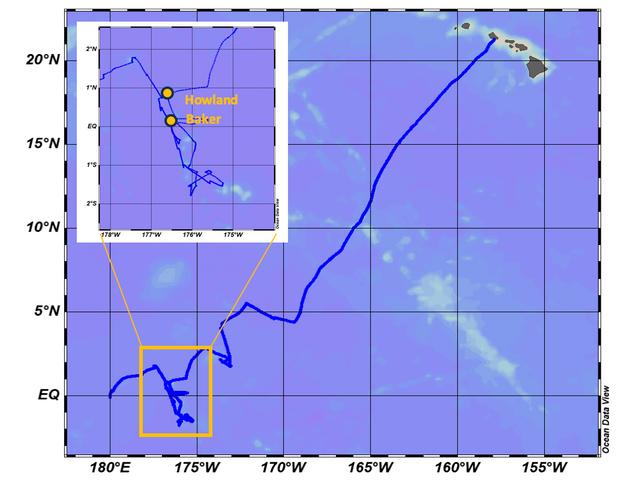 Track of scientific sample collection for cruise S’310 Inset shows the locations of Howland and Baker Islands