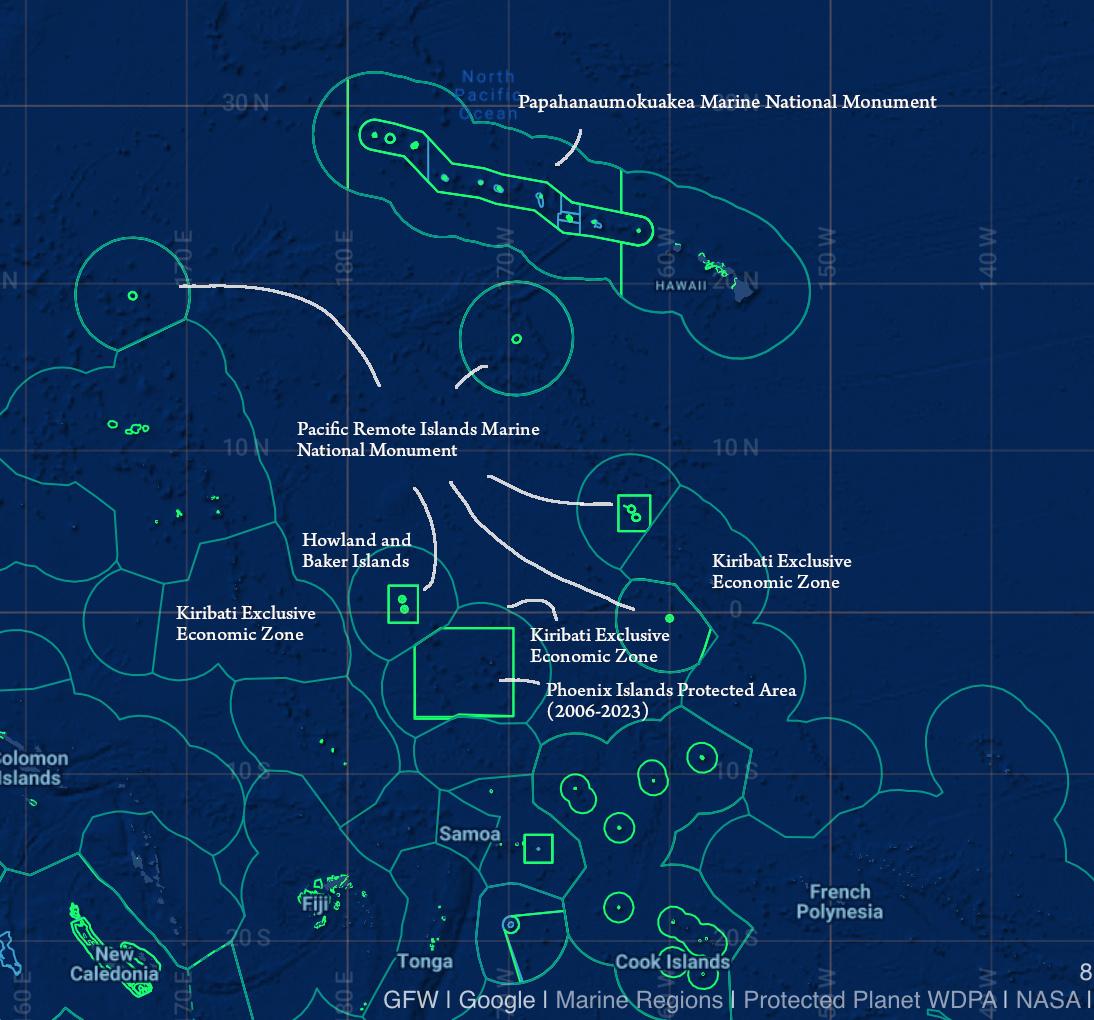 not visit the waters of Kiribati and meet the people stationed on Kanton Island, the waters around Howland and Baker, known as the American Phoenix Islands, are no less fascinating oceanographically, historically, and in terms of current management. This region offers data on the characteristics of marine protected area waters around equatorial sea mounts. And we knew we were learning in real time about geopolitical interactions with marine conservation. We respect the sovereignty and goals of Kiribati, a relatively new government, regaining independence in 1979 a nation whose territorial waters stretch across the equator a similar distance to the width of the United States.