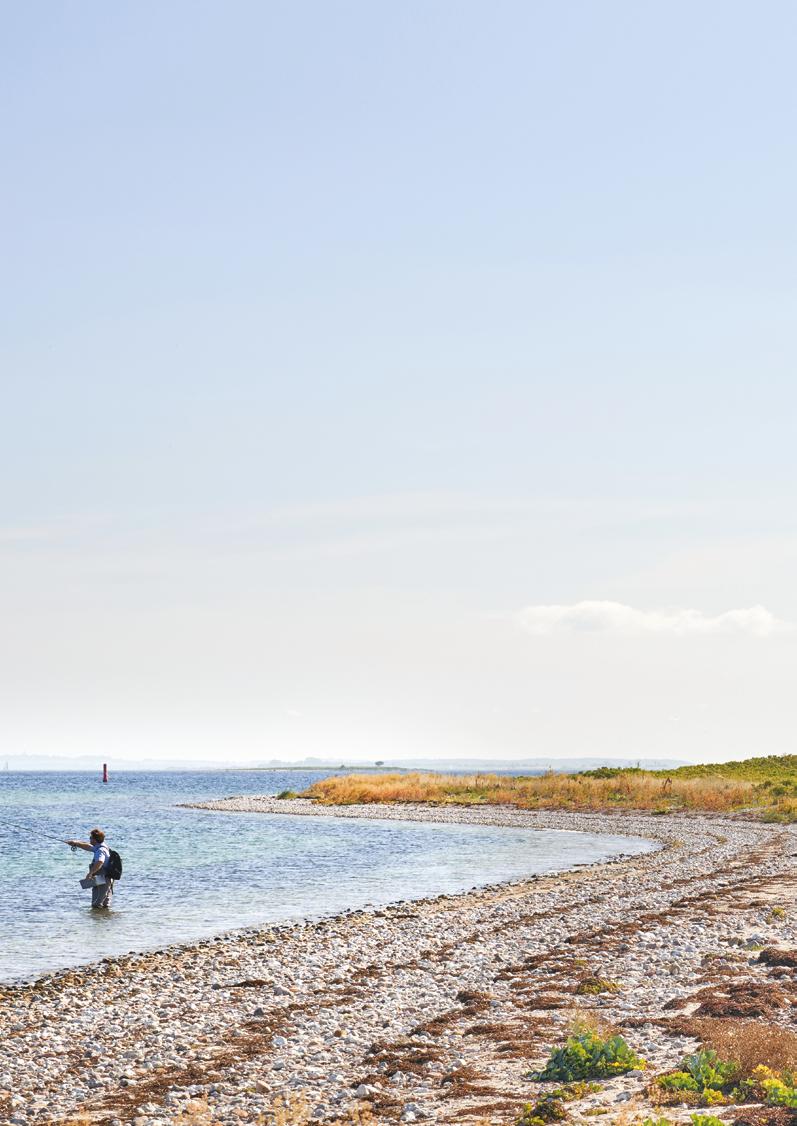 aus, in welcher Richtung dein Angeln beginnen soll. Auf Bjørnø erwartet dich ein einzigartiges Angelerlebnis, besonders entlang der 2,5 Kilometer langen Küste auf der Südseite, wo die Chancen gut sind. Beachte jedoch, dass die Küste herausfordernd sein kann, wenn der Wind aus Westen/ Südwesten bläst und die Wellen gegen die Tonklippen prallen, wodurch das Wasser trüb wird. Bjørnø ist ein einzigartiges Angelparadies; es ist ein Ziel, das in vielerlei Hinsicht einer tropischen Insel ähnelt - etwas, von dem man nicht denkt, dass es in Dänemark überhaupt existiert. Aber das tut es. Angle aktiv und erkunde die Umgebung, und bedenke dabei, dass die Fische oft in sehr flachen Gewässern leben - Bjørnø bildet da keine Ausnahme.