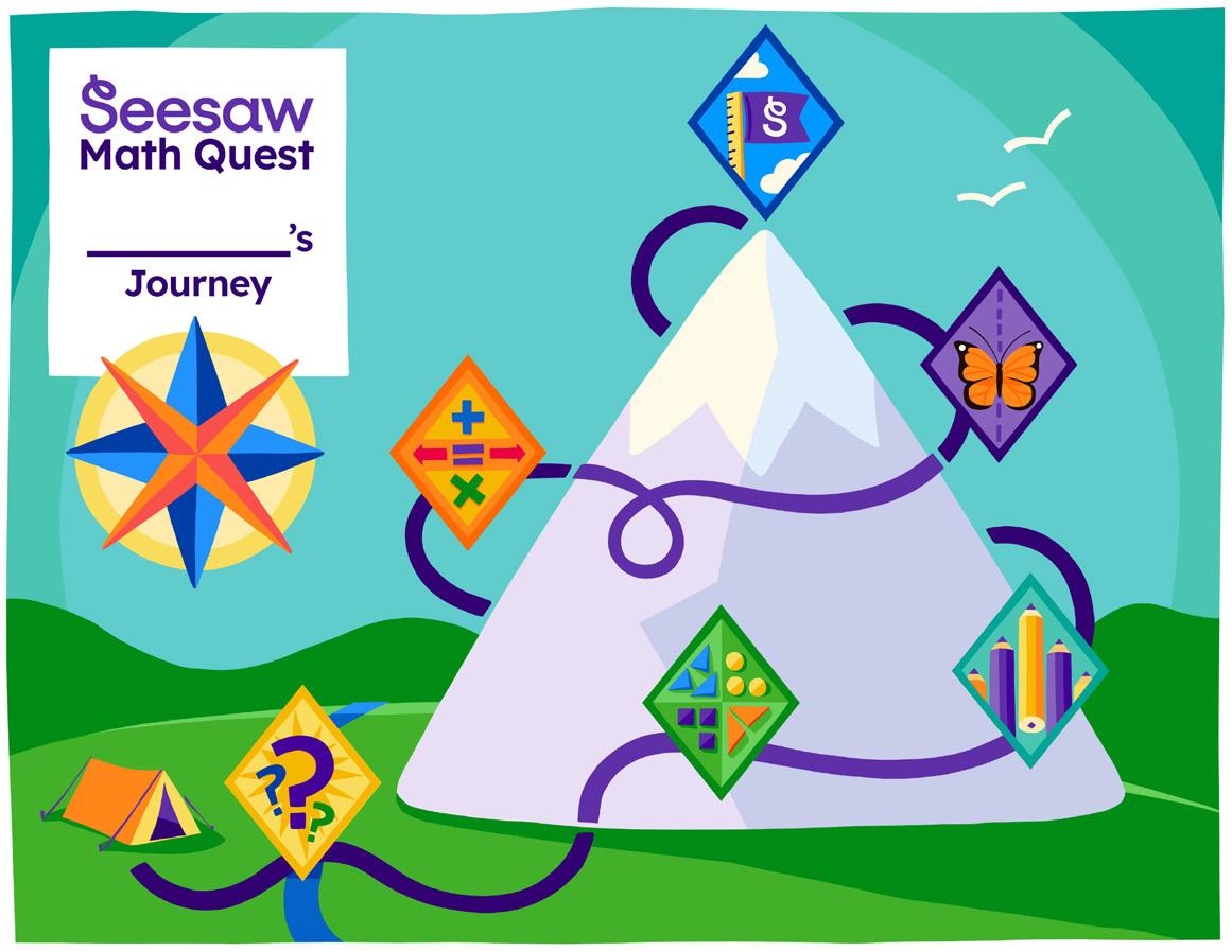 Welcome to the Seesaw Math Quest! Spark joy and curiosity as you tackle zero-prep math riddles delivered weekly. For every riddle your class completes, you earn a badge. Reach the summit by collecting them all! Below you’ll find your door display and badges. Hang them outside your classroom to proudly track your progress and inspire other classrooms to join the quest!