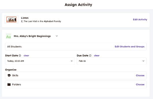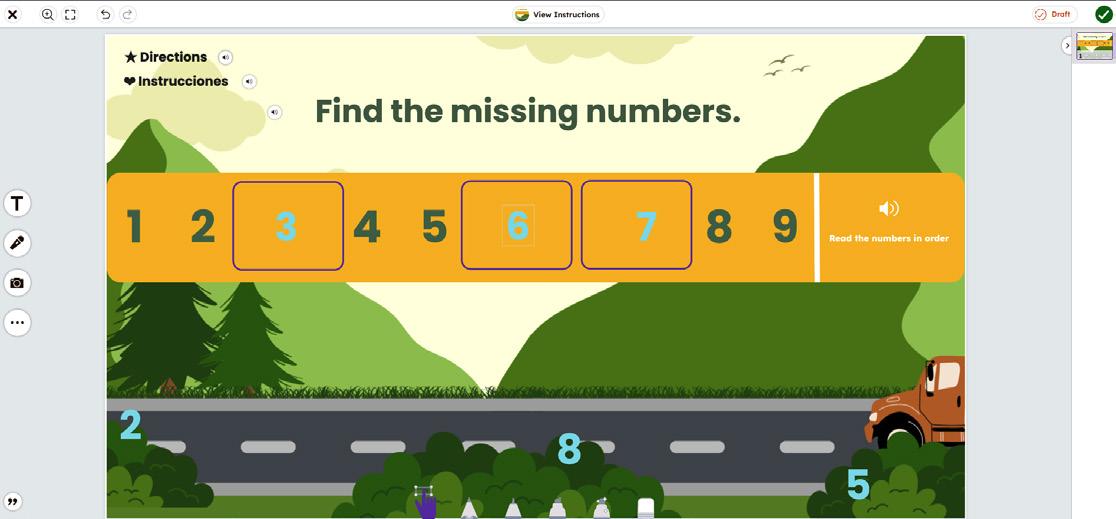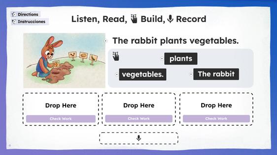 Hay miles de actividades diseñadas intencionalmente y alineadas con los estándares listas para asignarse tal cual o se pueden personalizar rápidamente para satisfacer las necesidades de los estudiantes. Cada lección proporciona instrucciones en inglés y español a los estudiantes.