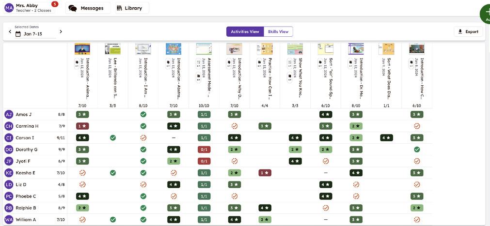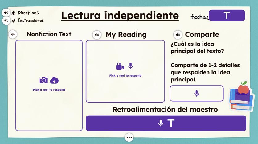 • Utilzes AI-powered tools, including Reading Fluency Assessments, that automatically analyses student progress on literacy skills in both Spanish and English.