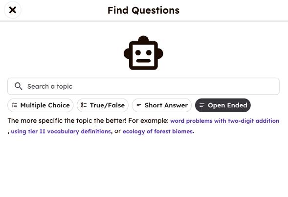 • Artificial Intelligence (A.I.) - powered question generator creates questions and saves time for teachers