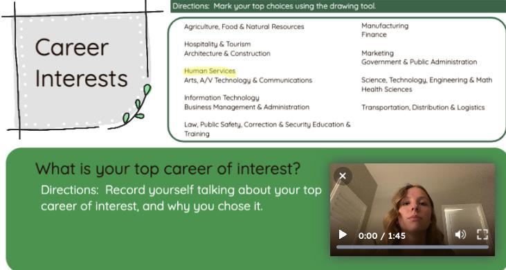 Students use Seesaw’s multimodal tools to showcase their work and credentials, while also reflecting on career goals, and make decisions about their future education requirements and career options.