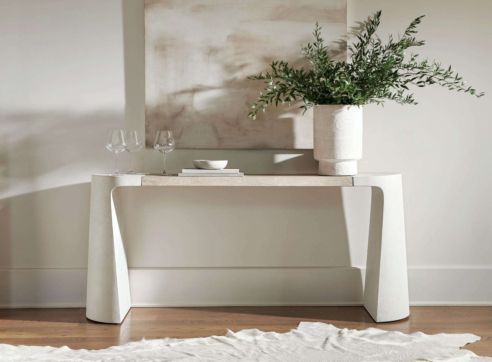Prado combines bold structure and contemporary design with classical elements in a novel approach to modern rustic. Textural finishes and hammered metal add depth and dimension to streamlined forms, while the muted tones of concrete soften geometric profiles. Coffered surfaces find harmony and subtle drama in the repetition of form, resembling the iconic ceilings in the Prado in Madrid. Monolithic pieces suggest an architectural influence, giving the collection a cool, timeless vibe. The look has a curated feel, merging unexpected genres with an elevated aesthetic and molding the idea of modern rustic into a new form.