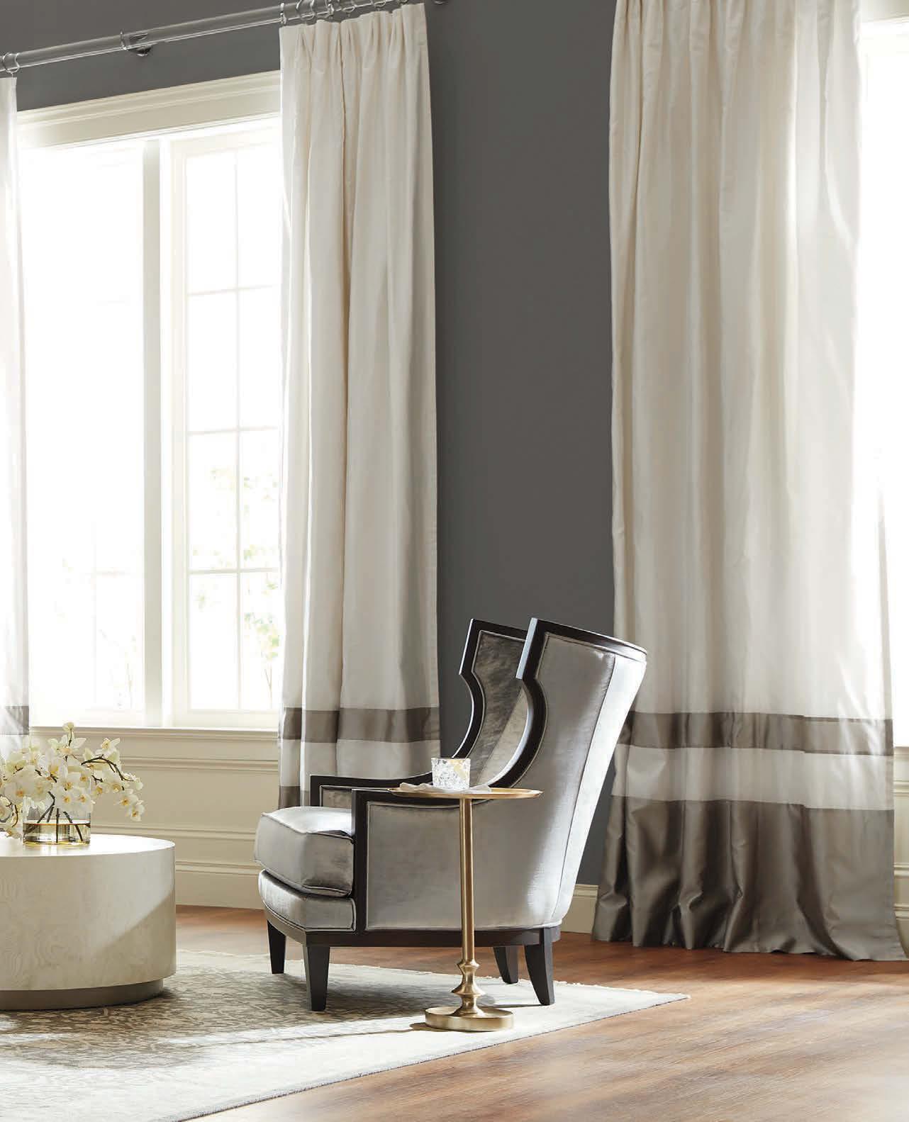 OUR DESIGNERS ARE EXPERTS AT CREATING CUSTOM WINDOW TREATMENTS USING DRAPERY PANELS IN EXCEPTIONAL FABRICS, PLUS ARTISAN-CRAFTED DRAPERY HARDWARE. WE ARE ALSO A HUNTER DOUGLAS PRIORITY DEALER, OFFERING A HIGH-QUALITY SELECTION OF MANUAL OR MOTORIZED SHADES AND BLINDS.