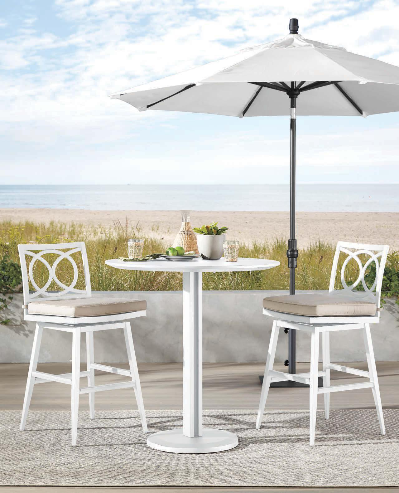 BISTRO SETS, LOUNGE SEATING, DINING FOR A CROWD, POOLSIDE CHAISES—ALL CRAFTED FROM DURABLE POWDER-COATED ALUMINUM AND FITTED WITH HAND-TAILORED CUSHIONS.