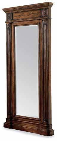 Lift lid with mirror opens to provide access to a felt-lined compartment with dividers; seven felt-lined drawers; two side doors open to reveal felt-lined compartment with jewelry hooks. 25 1/4W x 17D x 49 1/2H (64 x 43 x 126 cm)