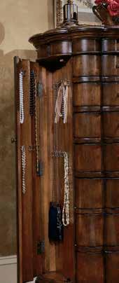 Finally, furniture as lovely as the jewelry stored inside. With serpentine shaping, exceptional styling and quality hardwood solids and cherry or mahogany veneer construction, you’ll look forward to finding your necklace and earrings in the morning. Lift lids and flip-tops with mirrors make it easy to appoint your jewelry, and felt-lined drawers, ring trays and jewelry hooks keep your special pieces organized.