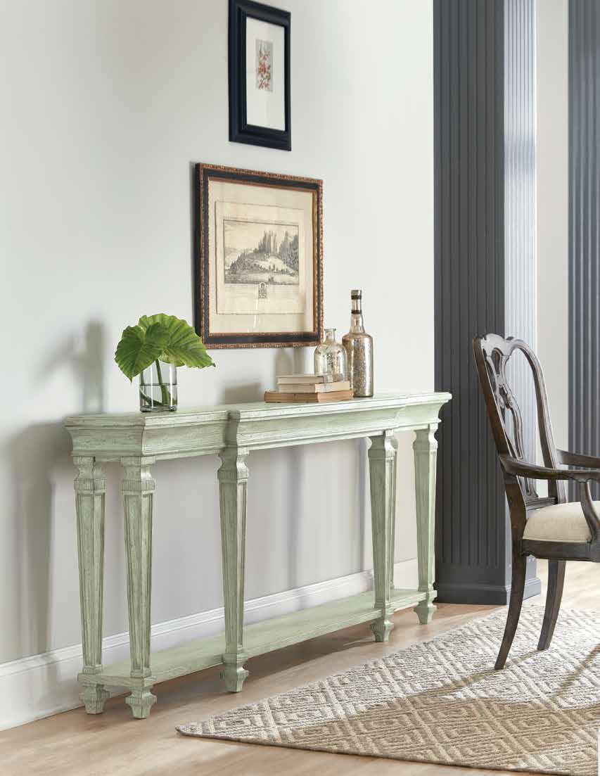 Start conversations with a mirrored chest. Turn heads with a pierced console. Delight the eye with the carved leg of an accent table, or the fretwork of an étagère.
