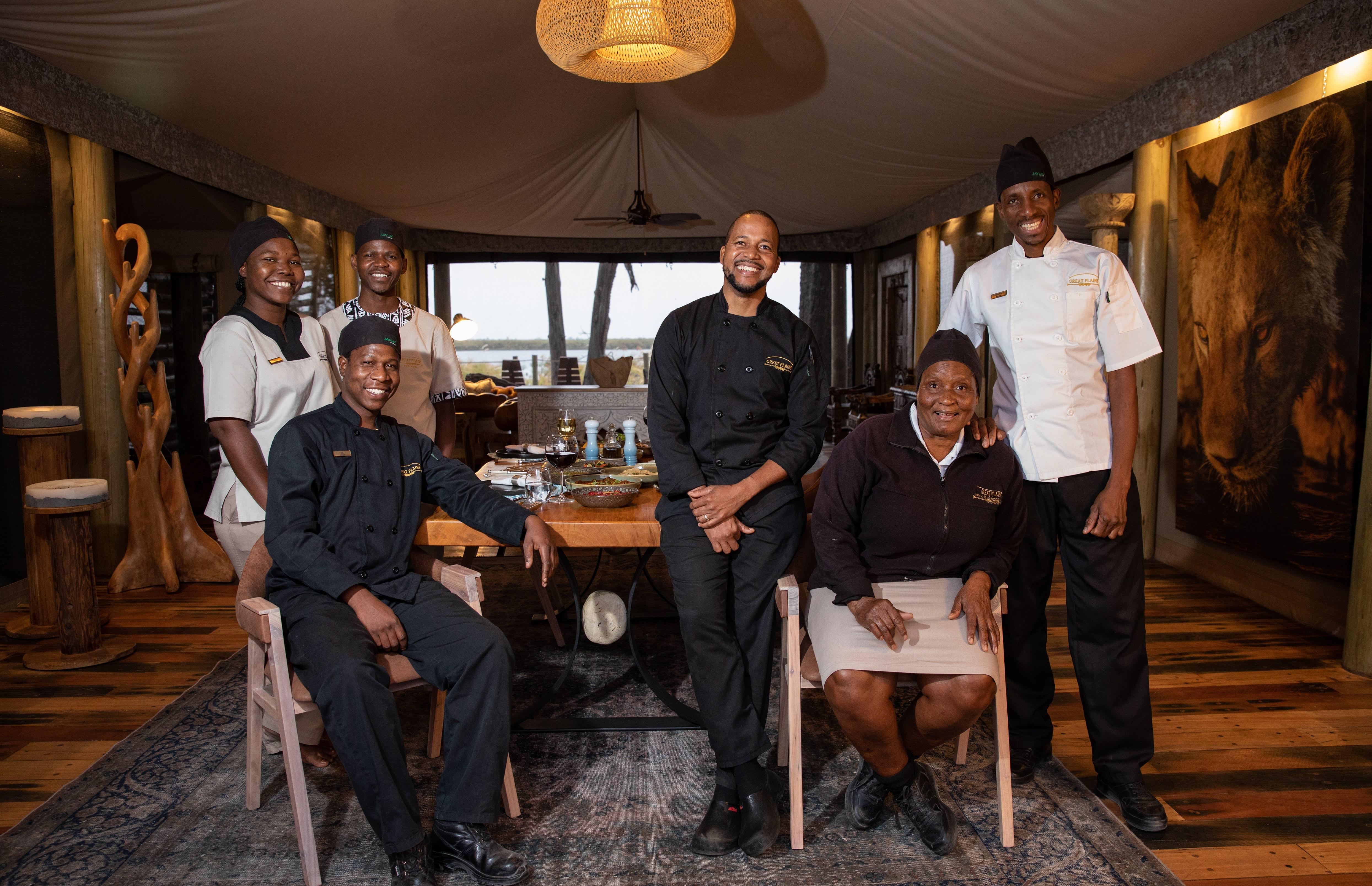 Guests gather in the inviting lounge and dining area, where tea and coffee flow freely all day long. As the sun sets, the fire pit becomes the perfect gathering place for stories and stargazing, while dinner in our camp's wine cellar promises an unforgettable culinary experience.