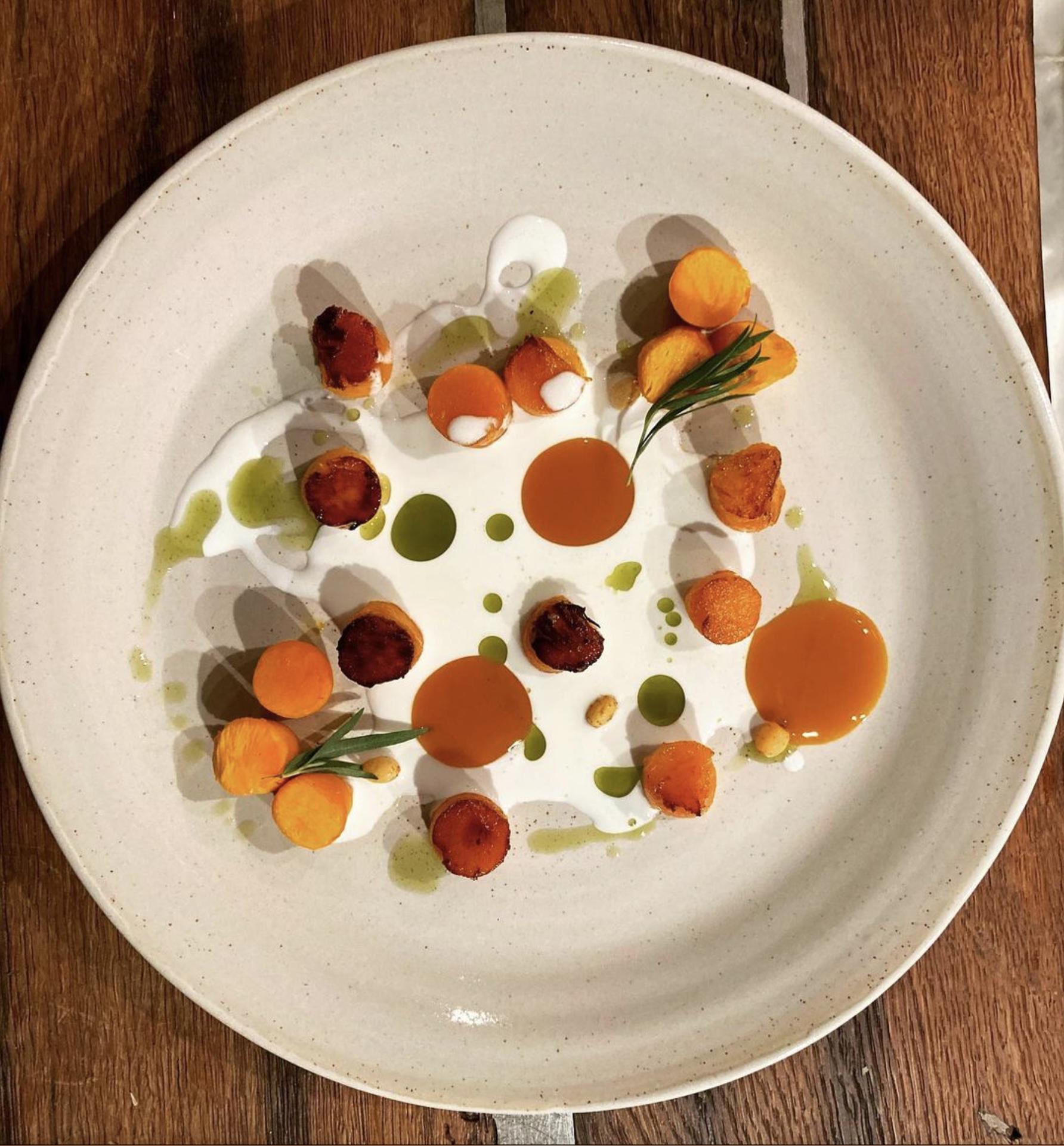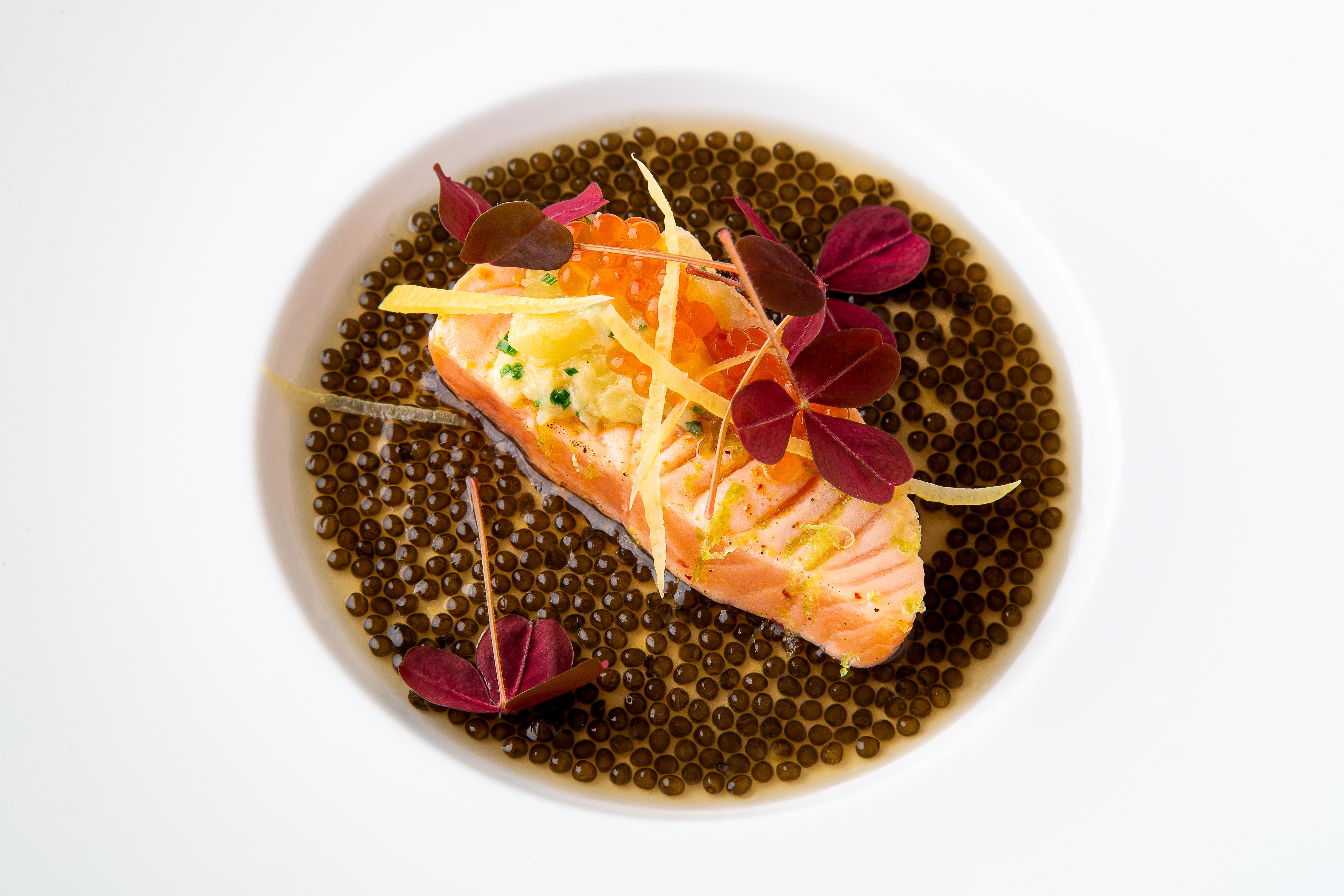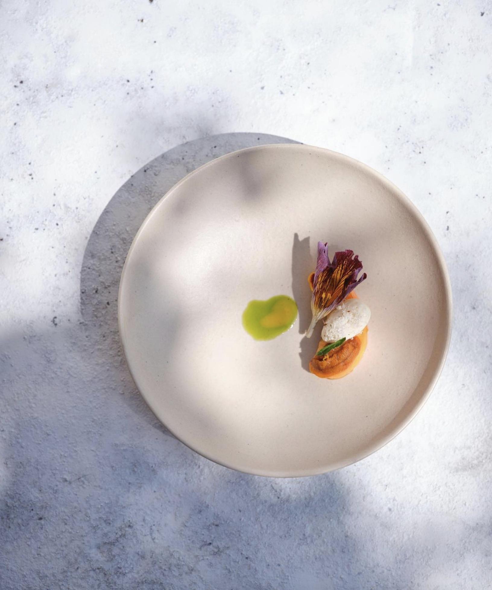 Douce Steiner's signature dish, Langoustine Royal, is a masterful celebration of flavours and textures that speaks volumes about her culinary expertise and creativity. This exquisite creation features the delicate sweetness of langoustine, impeccably paired with the distinctive warmth of red "Kampot pepper" that brings a subtle, nuanced heat to the dish. The addition of pink grapefruit injects a burst of refreshing acidity, balancing the richness of the langoustine with its citrusy tang. Olive oil lends a silky smoothness, enveloping each ingredient in its velvety embrace, while tarragon adds a hint of aromatic finesse, its slightly bittersweet notes creating a complex, harmonious flavor pro fi le. Together, these elements converge in a dish that is both elegant and daring, showcasing Steiner's ability to innovate within the realm of haute cuisine, making the Langoustine Royal a testament to her culinary artistry.