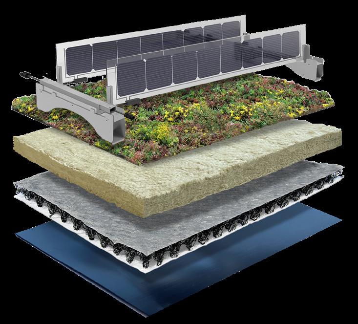 This lightweight solar system weighs 11 kg/m2 and requires no additional ballast in most cases. That is revolutionary for the application of solar energy on green roofs.