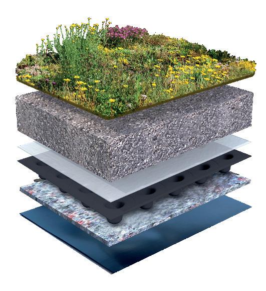 DIKTE SYSTEEMOPBOUW: 100 mm VERZADIGD GEWICHT: 107 kg/m2 WATERBUFFEREND VERMOGEN: 34 l/m2