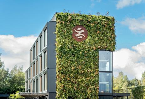 Aan de rand van het Amsterdamse Bos heeft Hotel & Wellness Zuiver de groene omgeving in haar pand laten terugkomen met een 560 m² SemperGreenwall. Het ontwerp van het hotel, wat pas gerenoveerd en uitgebreid is, was geïnspireerd door de beleving van de vier seizoenen in het omliggende park. Terwijl de kamers zijn ingericht met prachtige lente, zomer, herfst en winter-thema’s, zal het uiterlijk van de groene gevels ook elk seizoen veranderen. Van de meer dan 50.000 planten die in de gevel leven, zijn er veel winterharde en/of bloeiende soorten. Zo blijft het uiterlijk gedurende het jaar groen én biedt het variatie.
