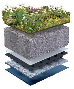 Bij deze systeemopbouw wordt de toepassing van een irrigatiesysteem en anti-afschuifvoorziening aanbevolen. De dakbedekking dient wortelwerend te zijn.