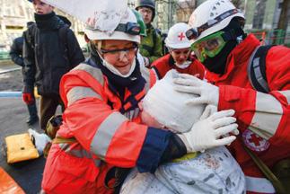 Call: emergency services on 112 or 999 and listen carefully to the instructions the ambulance call taker provides Compress: start pressing on the centre of the patient’s chest at a speed of 100-120 compressions per minute and at a depth of two inches or 5cms