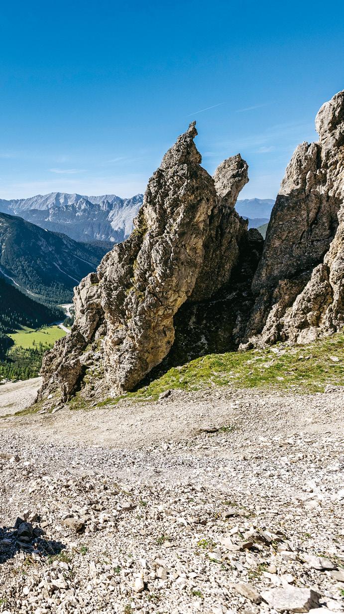 Schroffe Felslandschaften und spektakuläre Ausblicke begeistern auf dem Karwendel Höhenweg.