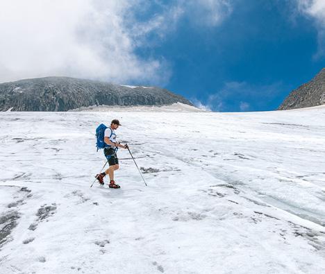 Sebastian Depke. Der Para Kletterer ist nämlich nicht nur an der Wand, sondern auch hinter den Kulissen unterwegs, zum Beispiel als Vorsitzender des Para Climbing Komitees des Internationalen Klettersportverbands IFSC. Im Porträt (S. 60) berichtet er von der erfolgreichen Bewerbung des Para Climbing für die Spiele – davon erfährt er bei einem Stopp in Turin, als er gerade mit seinem Solarbike zum Weltcup nach Innsbruck unterwegs ist –, und lässt uns außerdem an seinem zweiten Herzensprojekt teilhaben. Ausdrücklich keinen Gipfel erklimmen wollen die Teilnehmenden der PrimaKlimaTour des DAV Kaufbeuren-Gablonz. Unter dem Motto „Einfachheit statt Fülle“ geht es ab S. 64 auf ruhigen Wegen von Füssen zum Hahntennjoch – mit öffentlicher Anreise und Übernachtung auf Selbstversorgerhütten. Oft ist Einfachheit auch der Schlüssel zu entspannten Touren mit dem Nachwuchs. Tipps, wie man die Kids für die Bergtour motiviert, gibt’s auf S. 58.