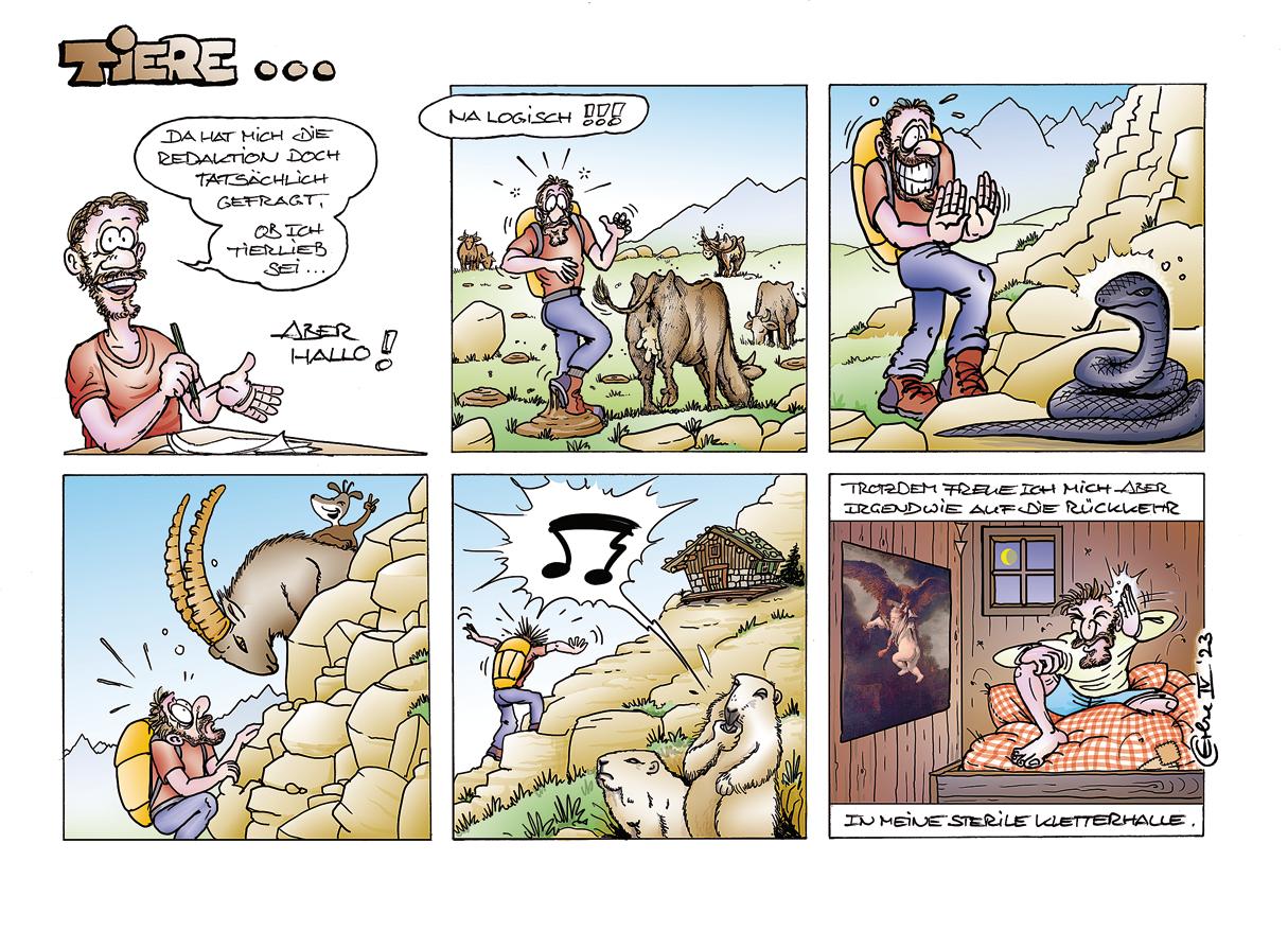 Wie wir das Risiko beim Bergsteigen trotz all der Veränderungen durch den Klimawandel so klein wie möglich halten, damit setzt sich der Artikel der Sicherheitsforschung ab Seite 36 auseinander. Eine gute Vorbereitung für alpine Klettereien in der Dauphiné (S. 10). Auch in der hochgelegenen Region in den französischen Westalpen hinterlässt die Klimaerwärmung bereits ihre Spuren – noch ist sie jedoch ein Paradies für nahezu alle alpinen Spielarten. Solange wir noch auf Gletschern unterwegs sind, solange werden Gletscherspalten eine Gefahr auf Hochtouren darstellen – eine Gefahr, die sich sogar noch vergrößern wird. Daher erklären wir auf Seite 44, was im Fall eines Spaltensturzes zu tun ist. Risikoärmer ist man sicherlich auf dem Trekkingbike unterwegs: Schroffe Bergpanoramen und große Natur gibt’s neben ordentlich Höhenmetern auf den 700 Kilometern von Salzburg zum Neusiedler See im Überfluss (S. 62). Mit unserem Veranstaltungstipp kann man das persönliche Risiko am Berg Anfang August sogar komplett auf null reduzieren: Die Kletterweltmeisterschaften in Bern laden nämlich vom 1.-12. August zum Mitfiebern ein – ganz ungefährlich vom Tal aus. Mit dabei ist auch Paraclimber Phil Hrozek – im Porträt ab Seite 58 erzählt er von seinen Ambitionen und warum das Klettern sein Leben gerettet hat. Einen wunderbaren Sommer – egal, ob auf dem Berg oder im WM-Fieber –wünscht