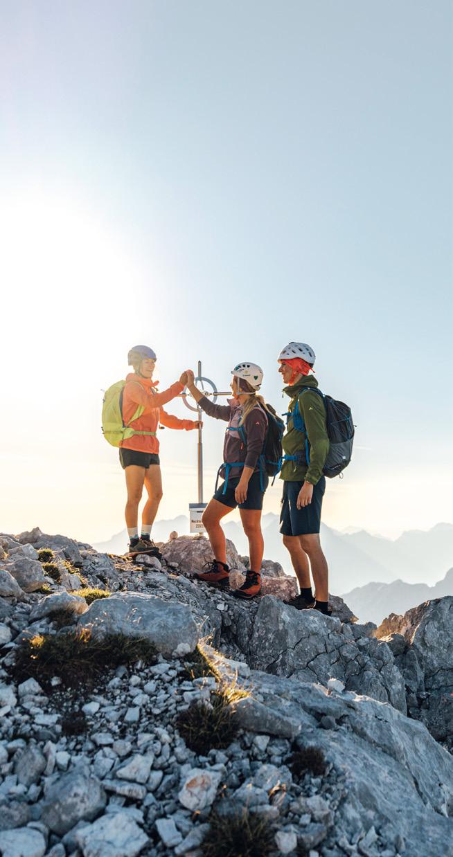 4 DAV PANORAMA 4/2023 Inhalt Editorial 3 Augenblicke 6 Klassiker Wilder Kaiser – Kopftörlgrat 8 Trentino Cammino San Vili 18 Berg & Tal 20 Sicherheitsforschung Klimawandel, Risiko und Bergsteigen 36 Auf einen Blick Wie funktioniert ein Gletscher? 41 Wie funktioniert das? Nützliche Tools auf Tour 42 So geht das! Spaltenbergung 44 Fitness & Gesundheit Tourenproviant 46 Knotenpunkt Tier und Mensch am Berg 49 Posteingang 57 Österreich Salzburg – Neusiedler See mit dem Gravelbike 62 Promotion Reisenews 67 Produktnews 71 Outdoorworld 75 Alpenverein aktuell 82 Vorschau und Impressum
