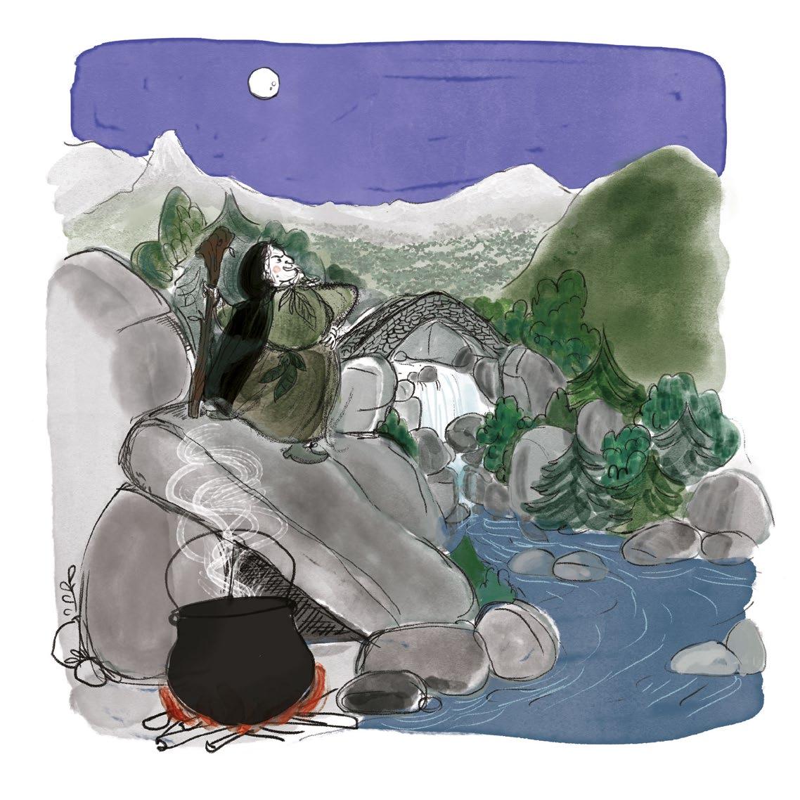 Aipiedi delle montagne, lungo il fiume Masino, viveva una donna misteriosa. Era conosciuta come la Màta Selvàdega. La sua casa non era una casa come le altre, ma un rifugio nascosto sotto un enorme masso dentro il fiume, dal quale usciva solo all’imbrunire.