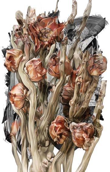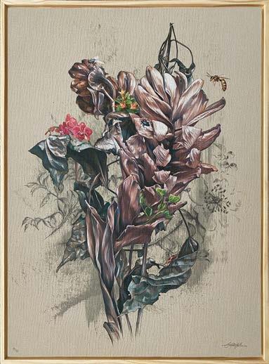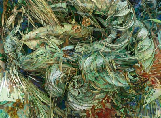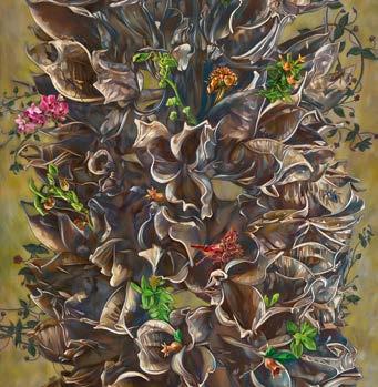 o tato e o olfato. Elas parecem superar o plano, projetando-se para o espaço tridimensional e tangenciando aromas e fragrâncias, reminiscências de um mundo em equilíbrio que parece desaparecer pela ganância do Ser Humano. Nesse momento, o discurso poético de Sérgio Helle ao nos revelar de maneira realista a potência das formas naturais, incorpora também o necessário discurso de preservação do mundo que parece derivar da crise climática de hoje para a catástrofe ambiental do amanhã. Entre a exuberância botânica de Burle Marx e a virulência incendiária de Krajcberg, Sérgio Helle reafirma a crença na ação artística, romântica e libertária. A arte, instrumento natural da espécie humana para observar e transformar o mundo, permite que o sonho e a realidade se complementem no espaço de uma tela, metáfora necessária de beleza em meio à insensatez da vida nos dias atuais.