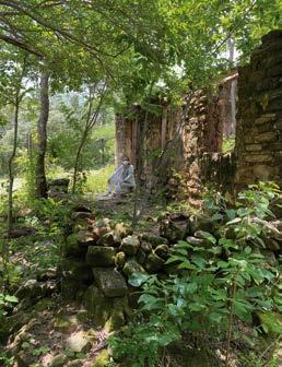 Como contraponto e estranhamento, o azulejo, numa interferência radical na paisagem, vem encobrir e apagar a história com um ambiente frio e asséptico; onde a vegetação, vida recente, luta em conviver com o passado.