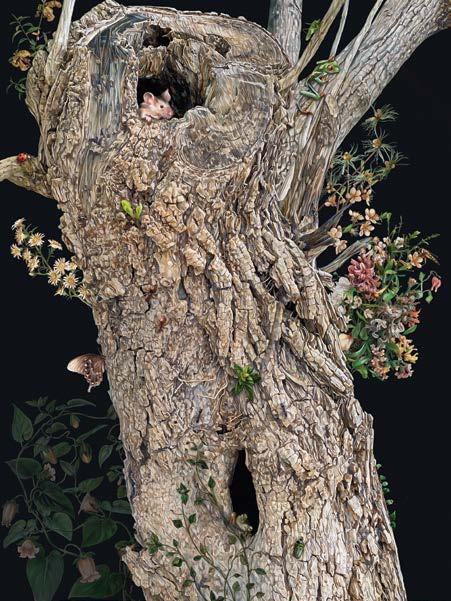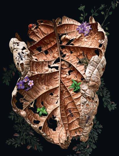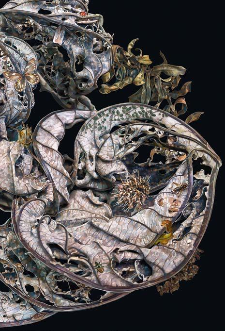 For some time now, I have been dedicating my work to reflecting on the cycle of life. I started off The Paradisus series from a leaf of the embaúba tree, also known as torém. I held the first exhibition of the series in Portugal in 2016 and in Italy in 2017. In 2018, I participated in LabVerde, a ten-day artistic immersion in the Amazon rainforest, where artists from different countries, histories, and cultures cast their gaze upon the Forest. There, I presented my first work with the cariri stone, which is abundant in the region where I was born. I am from Crato, in the Cariri region of Ceará. In 2019, I published the book “Paradisus - A Reverence to the Sacred,” with an exhibition in Fortaleza, where I have lived since 1974. In 2020, during the pandemic, I began the “Ressurgentis” series, focusing on the strength and resilience of life. I began using insects and small animals in the compositions. In 2022, between February 4th and 10th, I traveled to Cariri in search of our Ancestral Sea. This book brings together work from the three series.