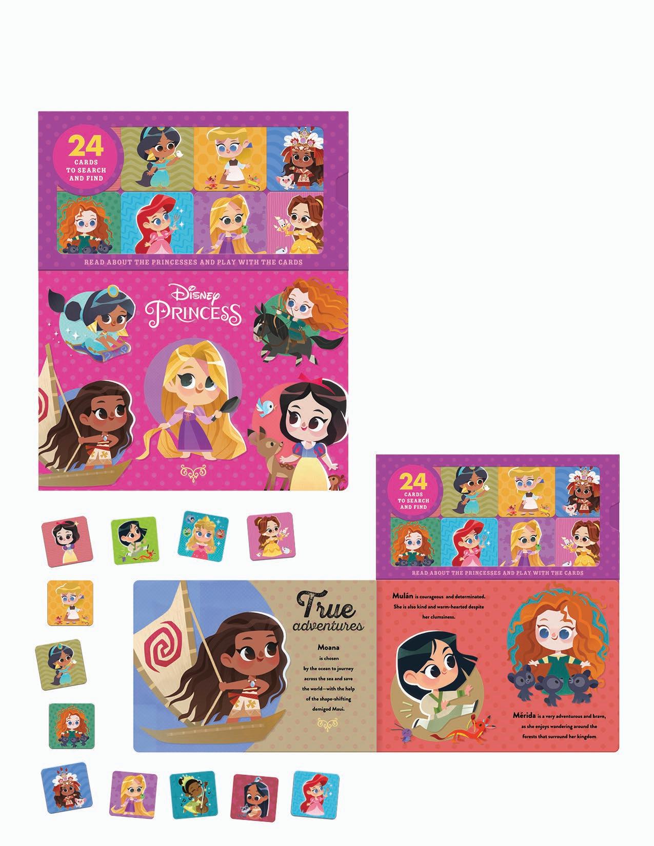 Meet the Disney Princesses since they were little, plus 24 cards to play search, memorize, find and match the characters. It can be played alone, with family or with friends.