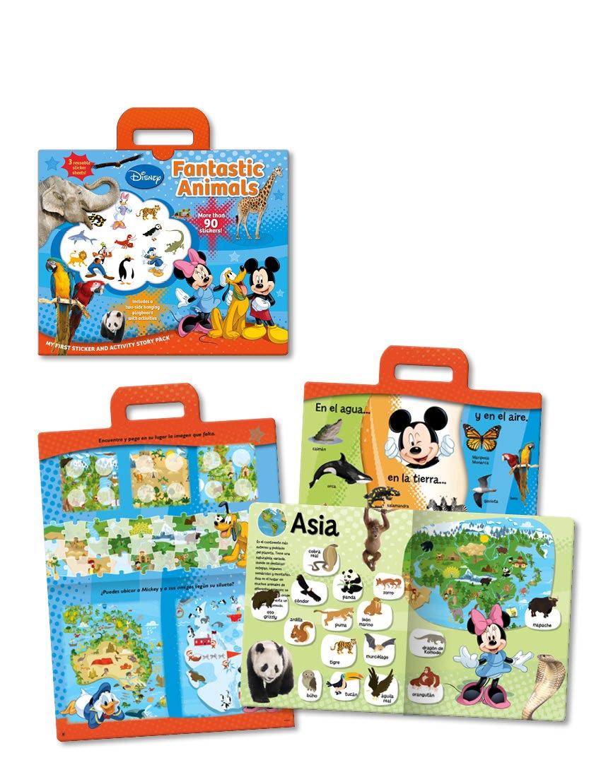 Features: 2 Story-Activity books, double-sided playboard with handle and sticker activities, 2 sheets of reusable stickers