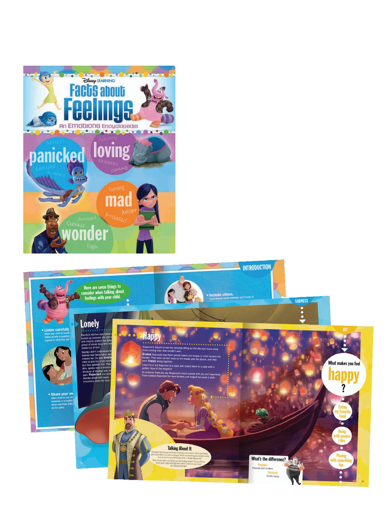 A starting point for conversations that support and celebrate children emotional growth and developement. This book gives adults and children an opportunity to share their feelings together. There are fifty emotions to explore. Each emotion is introduced with a story moment from one of children favorite Disney or Disney/Pixar movies.