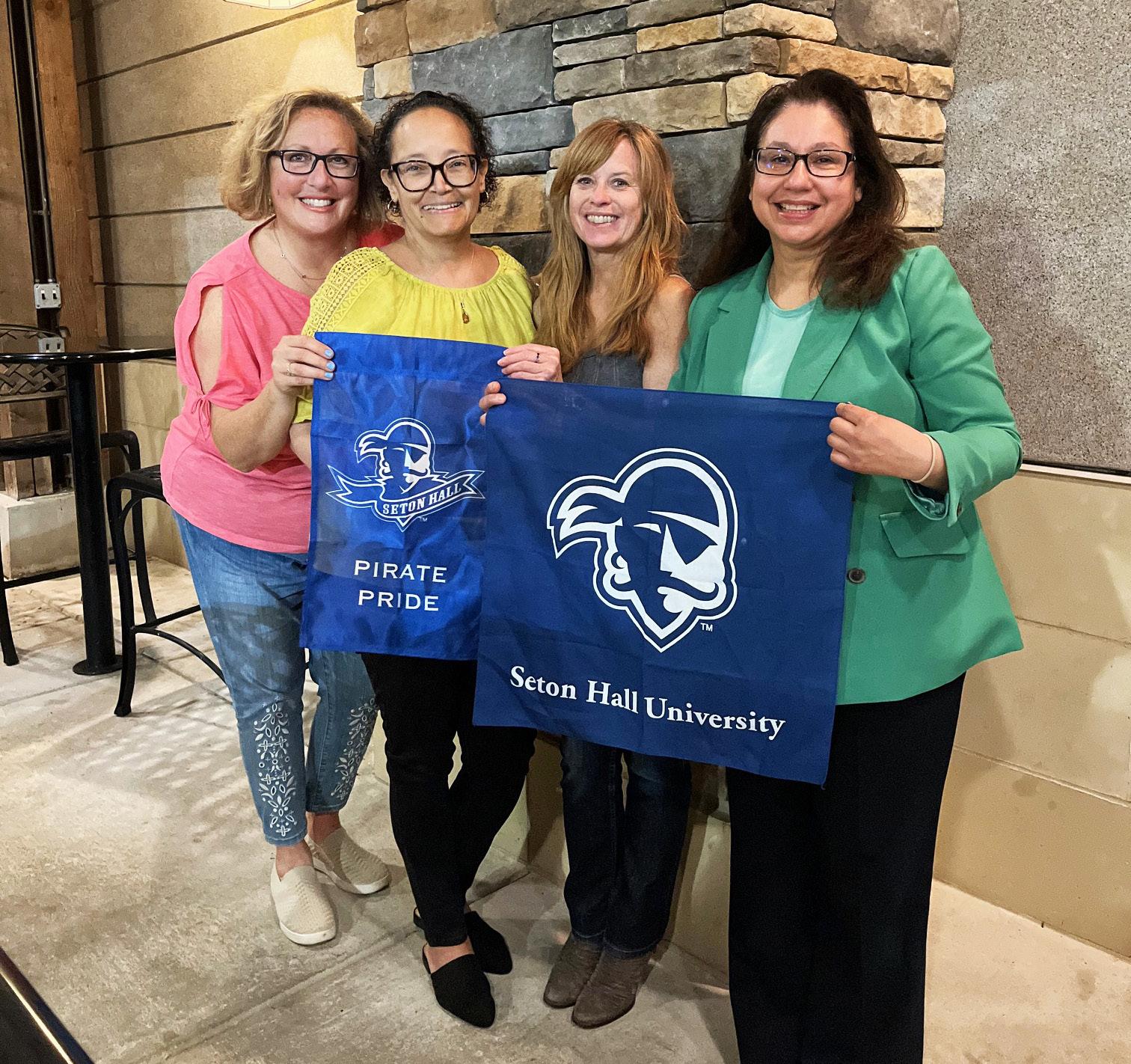 1. Sandra DeRose ’75, her sister, and other WSOU alumni spent a week in Tuscany, reminiscing about Seton Hall and showing their Pirate Pride after winning the trip at a WSOU anniversary dinner.