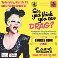 As someone who completely lacks the glamor gene, I am awed both by the huge hair and the huge hearts of our drag community. I’m hoping to see you all at So You Think You Can Drag? –a drag fundraiser and competition to benefit the Harvey Milk Elementary School. It is an annual benefit presented by the Grand Ducal Council. This year the truly fabulous Kylie Minono will be hosting the event that will feature an all-star lineup of some of our best local drag talent— and special celebrity judge Sister Roma. In addition to the professional drag artists, the top five community members who have signed up to raise funds for the school will be put in drag to compete for the crown.