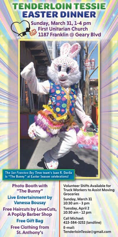 EASTER EGG-STRAVAGANZA is a Castroriffic Block Party at Noe and Market Street on Saturday, March 30, noon–6 pm. San Francisco’s best and brightest bushy-tail bunnies converge again to commemorate Easter with their Bunny Hop and costume contests (pets, kids and adults—all open themed). Presented by https://www.artyhood.org/