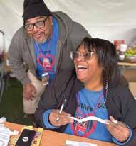 San Francisco Bay Times’ team member Juan Davila coordinated a free photo booth with gift bags for children. Bay Times co-publisher Betty Sullivan’s family members Elizabeth and Callie Herren, visiting from Orlando, joined Davila at the booth.