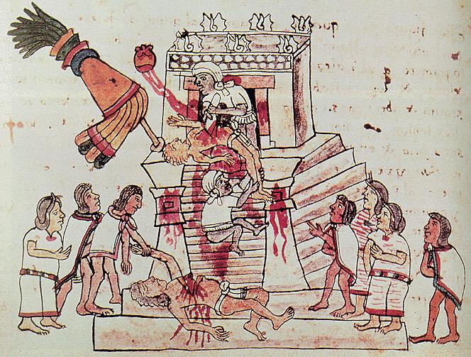 Entre las ofrendas más preciadas, se encontraban los sacrificios humanos. Estas solían ser ofrendas de sangre producidas por el corte de diversas partes del cuerpo humano, generalmente de los sacerdotes. Usualmente se solía sacrificar la lengua, los labios o las orejas y cuanta más sangre se derramara, mayor sería la voluntad de los dioses, siendo también directamente proporcional el tamaño de la ofrenda con la posición de jerarquía del sacrificado.