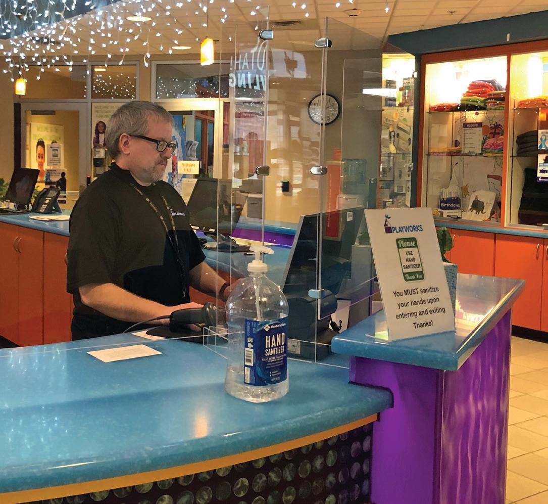 Center: Plastic glass shields were installed at many SMSC enterprises and departments to help protect staff and customers alike.