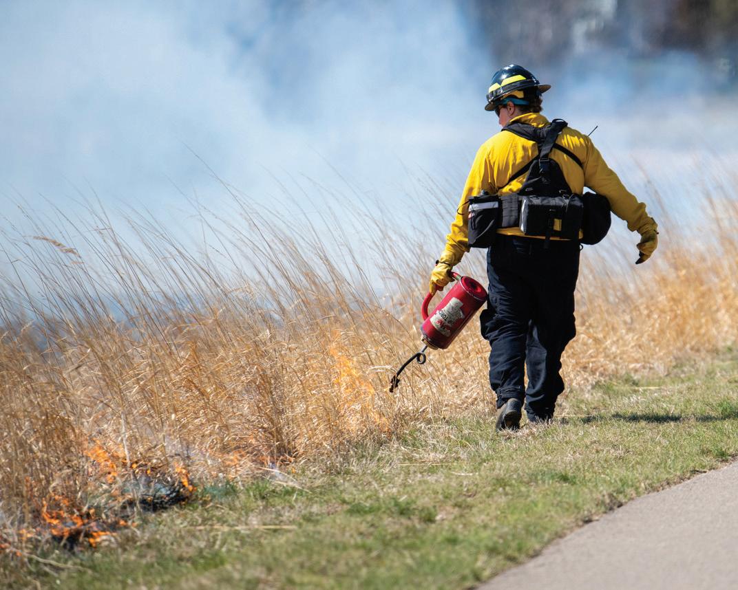 The Land and Natural Resources Department conducts prescribed burns on SMSC lands and, upon request through mutual aid agreements, in neighboring cities each spring and fall as an effective land preservation tool. Prescribed burns are a critical tool for managing forest and grassland ecosystems. They involve intentionally setting a controlled fire to an area, with the goal of mimicking natural fire cycles and improving the health and resilience of the landscape.